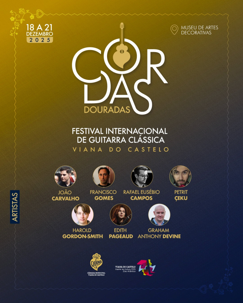 O Cordas Douradas – Festival Internacional de Guitarra Clássica de Viana do Castelo terá lugar no Museu de Artes Decorativas, no Largo de São Domingos, entre os dias 18 e 21 de dezembro de 2025.
