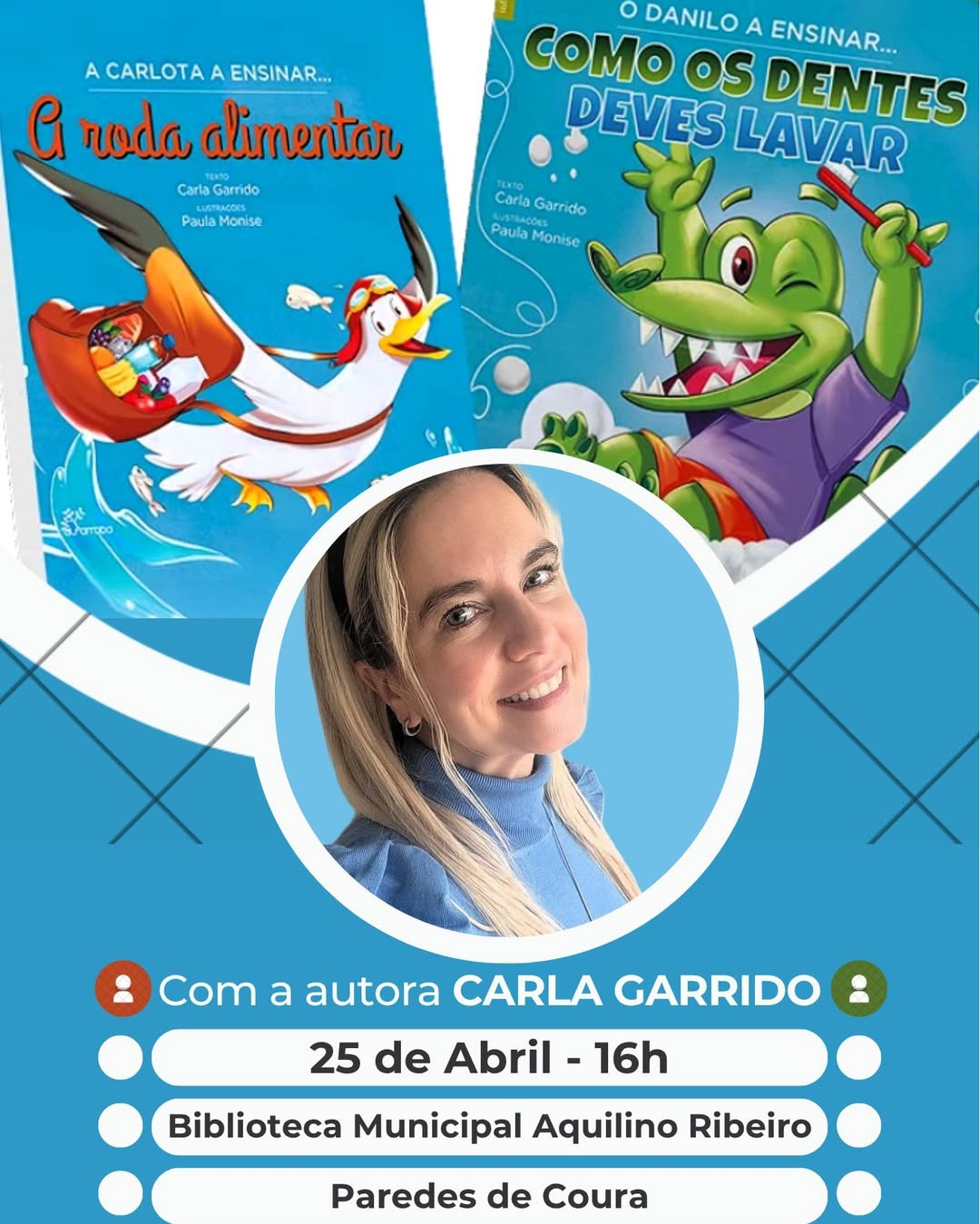 Às 16h00, a autora apresentará o seu mais recente livro, com duas capas e histórias distintas: “O Danilo a Ensinar…Como os Dentes Deves Lavar” e “A Carlota a Ensinar…a Roda Alimentar”.