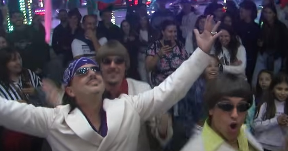 No vídeo pode ver-se o grupo no meio da multidão a divertir-se.
