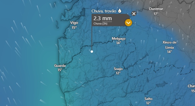 Porém, o tempo vai começar a mudar ao final do dia. Das 22h00 em diante, será chuva fraca em todo o Alto Minho que poderá ser mais intensa na terça-feira com possibilidade de trovoada.