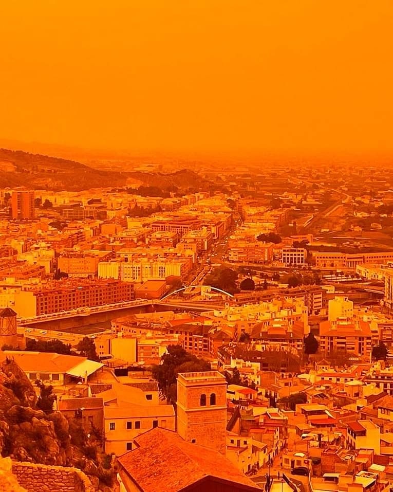 Recorde-se que esta nuvem começou esta segunda-feira a afetar de forma mais intensa o sul de Espanha, onde o céu tomou uma cor laranja mais intensa, proporcionando imagens de rara espetacularidade.
