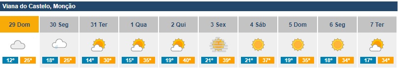 O calor vai apertar nos próximos dias em todo o Alto Minho. De acordo com as previsões do Instituto Português do Mar e da Atmosfera (IPMA), as temperaturas máximas vão disparar no distrito de Viana do Castelo com Monção a ser o concelho mais quente. Na quinta-feira, esta vila deverá mesmo atingir os 40ºC de máxima e os 19ºC de mínima. No concelho vizinho de Melgaço, os termómetros vão alcançar os 38ºC. Em Valença, as temperaturas máximas vão chegar aos 37ºC. Em Paredes de Coura, aos 36ºC.