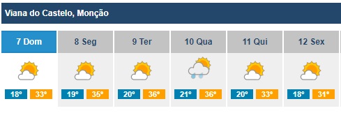 Para quinta e sexta-feira, a meteorologia prevê o regresso de céu pouco nublado ou limpo mas com máximas a não ultrapassar os 33ºC no Vale do Minho.
