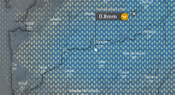 Esta previsão é confirmada também pelo portal windy.com a apontar trovoada forte para o distrito de Viana do Castelo no final da manhã de quarta-feira, que deverá ser acompanhada de aguaceiros. Este cenário deverá prolongar-se até ao princípio da noite.
