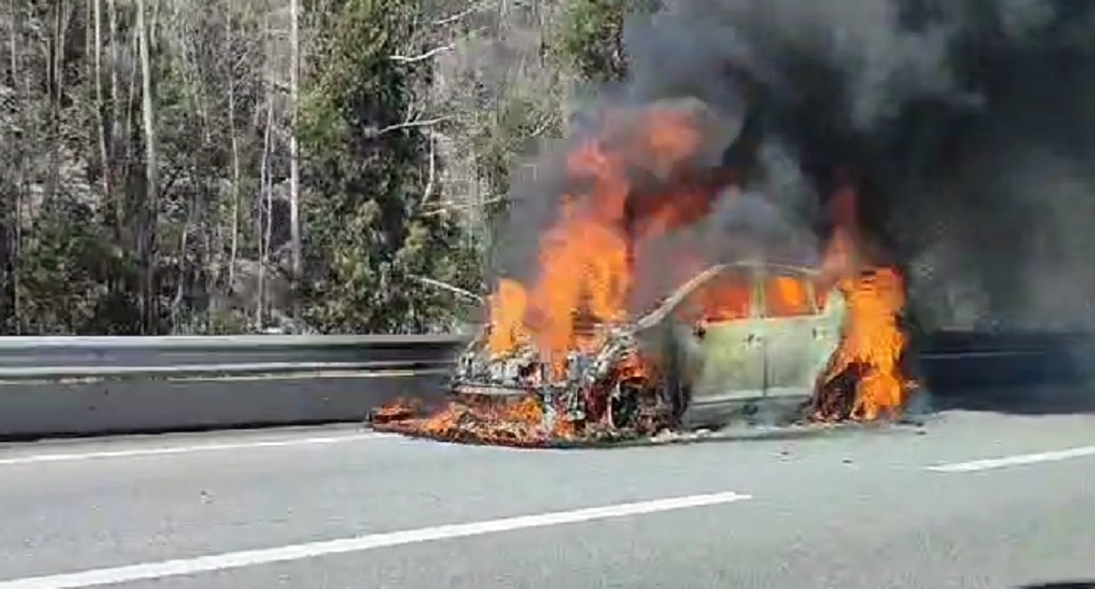 Um carro foi totalmente consumido pelas chamas durante a tarde deste domingo na A28, sentido Sul/Norte, em Lanhelas, Caminha.