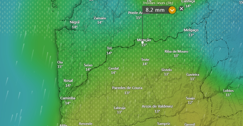 De acordo com o windy.com, há mesmo a possibilidade de ocorrência de trovoadas, entre as 18h00 e as 22h00.