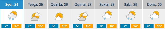 De acordo com as previsões do Instituto Português do Mar e da Atmosfera (IPMA), os próximos dias vão ser de céu nublado no distrito de Viana do Castelo, com ligeira descida das temperaturas: os valores máximos descem dos 17ºC aos 15ºC; e os mínimos dos 7ºC aos 5ºC.