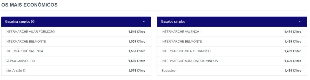 Já a gasolina 95 está a 1,565 euros o litro. É superada pelo Intermarché de Vilar Formoso que vende a 1,549 euros o litro e pelo Intermarché de Belmonte, a 1,559 euros o litro.