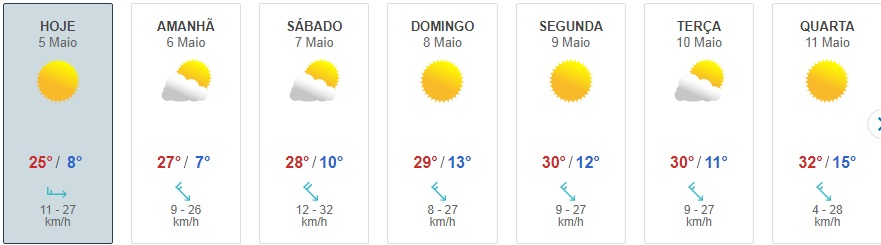 Quanto às temperaturas mínimas, também vão subir. Vão oscilar entre os 13ºC e os 15ºC.