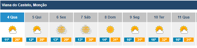 Temperaturas máximas em Monção podem ultrapassar os 30ºC na próxima quarta-feira