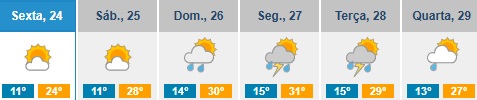 As temperaturas máximas vão aos 28ºC, e as mínimas nos 11ºC.