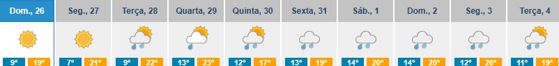 Quanto aos valores mínimos, após uma descida até aos 7ºC prevista para esta segunda-feira, vão regressar aos 13ºC a 14ºC durante o resto da semana.