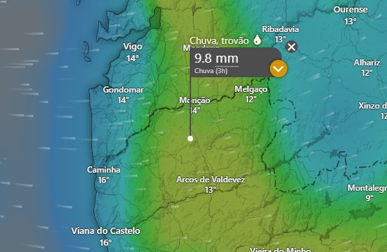 Deverá aumentar de intensidade ao longo da semana. De acordo com o portal meteorológico Windy, as previsões apontam para chuva mais intensa durante a tarde de quinta-feira.