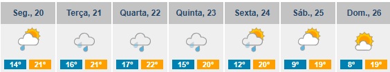 Os valores mínimos entre os 15ºC e os 16ºC, com descida aos 12ºC na sexta-feira.