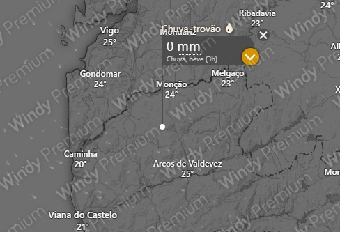 O portal meteorológico windy, confirma também total ausência de precipitação nos próximos dias. O próximo domingo promete ser bastante soalheiro.