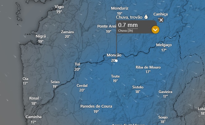 De acordo com o portal meteorológico windy, estão previstos períodos de chuva fraca a partir do final da tarde que poderão prolongar-se durante a madrugada de sábado.