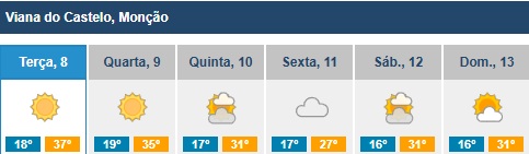 Os termómetros vão começar a descer no Alto Minho. De acordo com o Instituto Português do Mar e da Atmosfera (IPMA), a previsão para amanhã é de uma descida de apenas 2 graus, com máximas de 35ºC e um dia ainda cheio de sol.