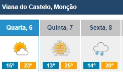 Em sintonia, o portal windy.com prevê, para sexta-feira, chuva fraca em todo o distrito de Viana do Castelo a partir do início da tarde. Pode passar a moderada.
