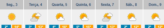 As mínimas vão oscilar já entre os 2ºC e os 4ºC. Os valores máximos não deverão ultrapassar os 15ºC.
