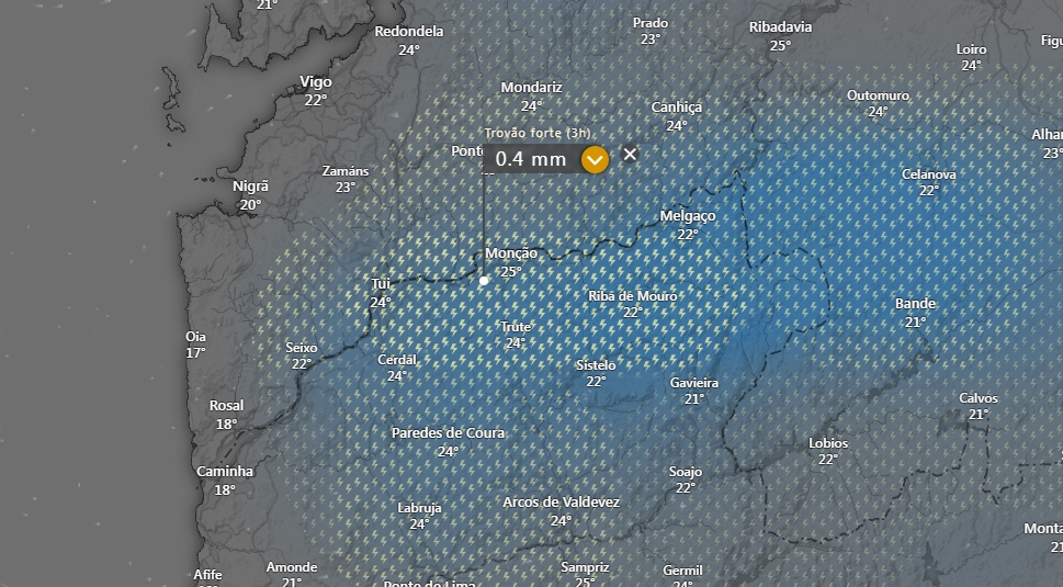 O portal windy.com confirma as previsões e alerta mesmo para trovoada forte em toda a região.