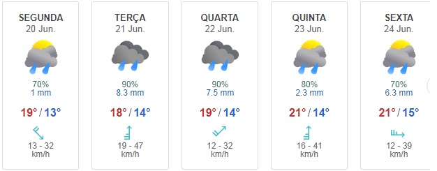 O vento vai aumentar de intensidade nos próximos dias passando de fraco a moderado.