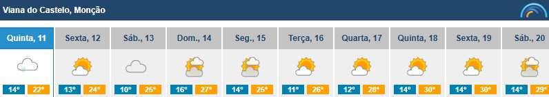 Em Valença e Melgaço vão aos 29ºC. Vila Nova de Cerveira nos 28ºC; Paredes de Coura nos 27ºC e Caminha nos 24ºC.