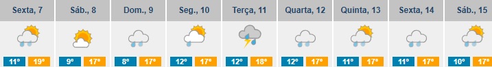 As temperaturas máximas deverão rondar os 17ºC. Os valores mínimos vão andar na ordem dos 10ºC a 11ºC.