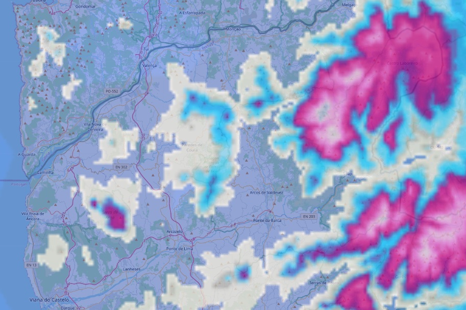 O mais recente mapa emitido pela plataforma meteoexploration mostra que os 10 concelhos do distrito de Viana do Castelo podem ser afetados pela neve nos próximos dias.