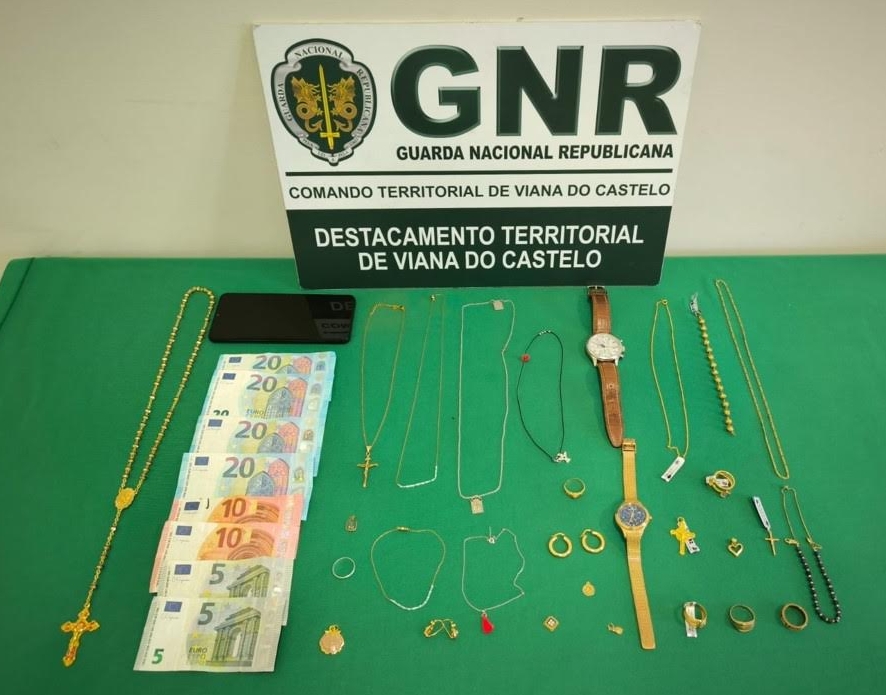 No seguimento da ação, foi realizada uma revista pessoal de segurança ao suspeito e uma busca domiciliária, tendo sido apreendido e recuperadas várias peças em ouro e em prata; dois relógios; um telemóvel; 90 euros em numerário.