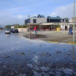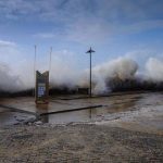 O muro superior do paredão cedeu e as águas do mar invadiram por completo o parque de estacionamento junto ao areal.