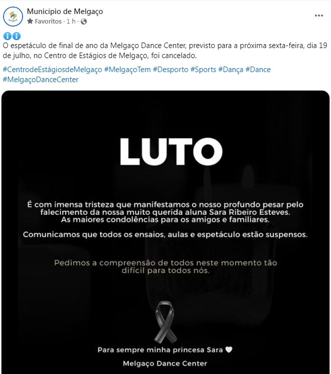 Em nota divulgada, a Melgaço Dance Center de dança refere que uma das vítimas mortais do trágico acidente rodoviário ocorrido na madrugada do passado domingo, em Lamas de Mouro, era aluna daquela escola.