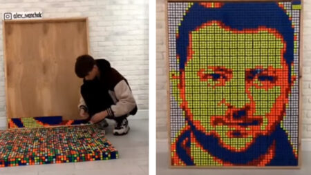 Com dezenas de cubos, conseguiu retratar Volodymyr Zelensky com enorme perfeição.