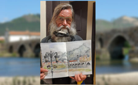 Artista peregrino passou pelo Albergue de Peregrinos de Ponte de Lima.