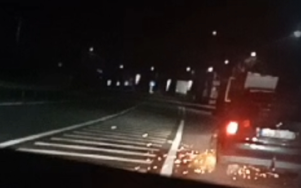 Um condutor foi filmado esta terça-feira à noite na Estrada Nacional (EN) 13, na freguesia de Campos, a circular com pelo menos um dos pneus furados.