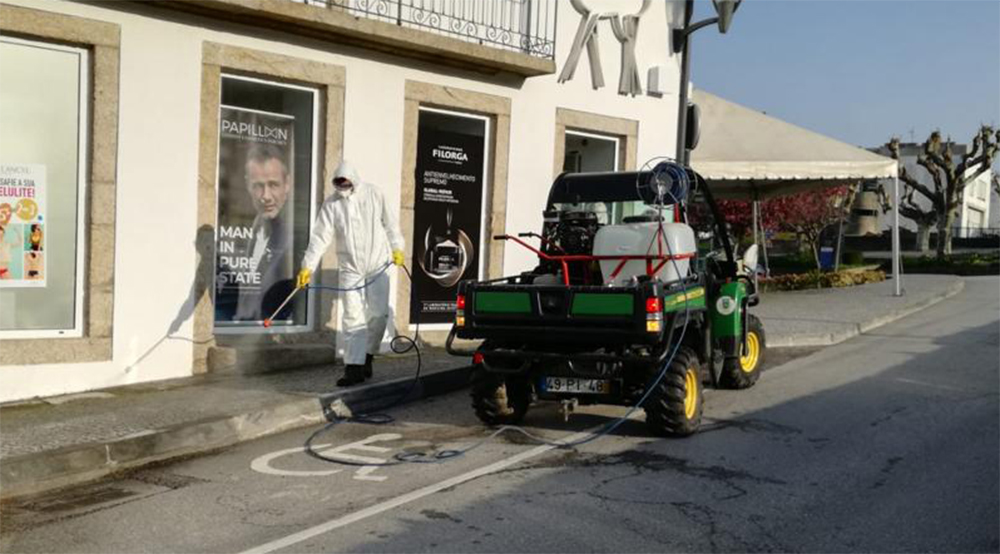 Devidamente equipados e com recurso a um produto específico, os funcionários municipais e das juntas de freguesias estão a desinfetar locais envolventes ao centro de saúde, farmácias, bancos, contentores, e a todos os espaços de maior afluência de pessoas como supermercados, entre outros.
