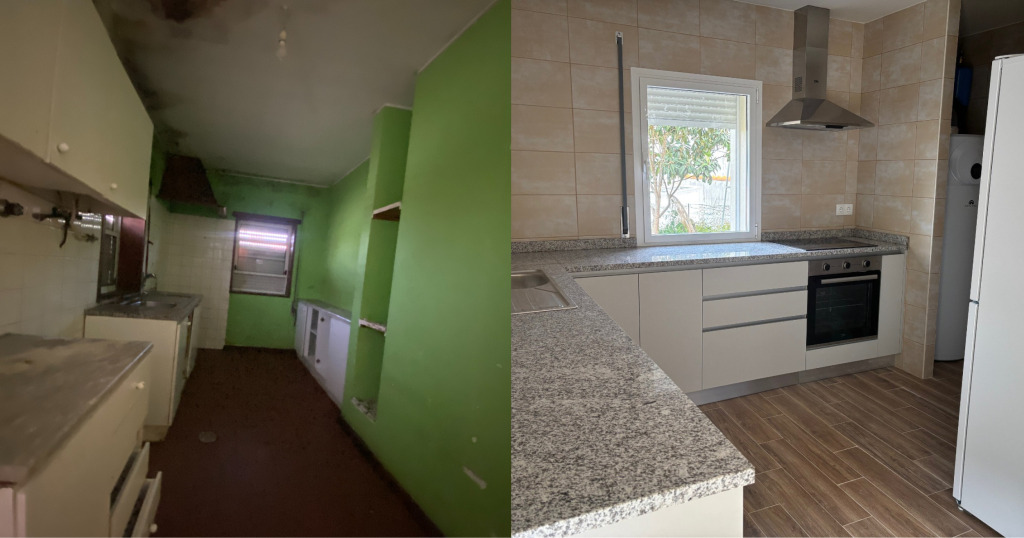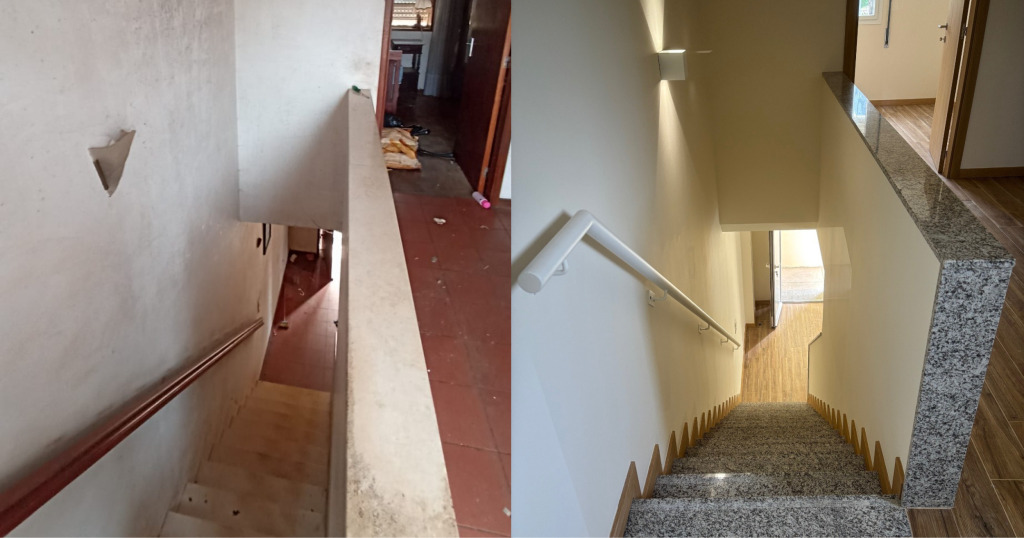 As habitações já concluídas foram alvo de uma intervenção profunda, que incluiu: a ampliação do edifício para integrar uma instalação sanitária acessível no rés-do-chão, um anexo e um novo espaço de circulação no primeiro piso; a renovação integral da cozinha – equipada com novos eletrodomésticos – e a reabilitação de pavimentos e paredes.