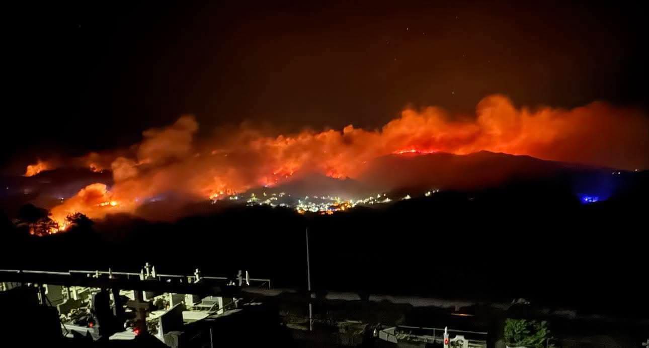 As chamas seguem descontroladas e os bombeiros estão a dar tudo para que não cheguem às habitações.