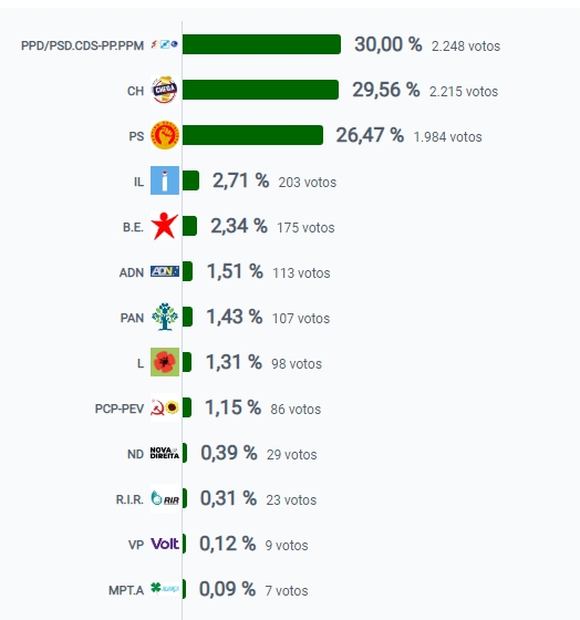 Terminada a contagem, e de acordo com os resultados divulgados pelo Ministério da Administração Interna, o partido liderado por André Ventura alcançou em Valença 29,56% dos votos.