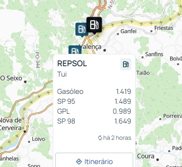 De acordo com o portal Via Michelin, na Repsol de Tui, o gasóleo está a ser vendido a 1,419 euros por litro. A gasolina está em 1,489 euros por litro.