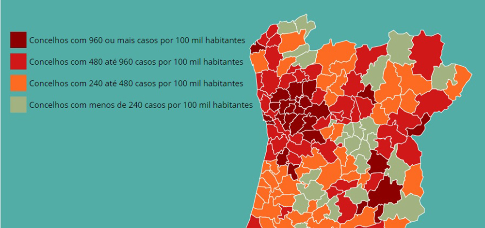 O Governo estará a preparar-se para fazer um “escalonamento dos concelhos” em função do número de casos de COVID-19 por 100 mil habitantes nos últimos 14 dias. De acordo com o Jornal de Negócios, serão quatro escalões sendo que três deles serão mais graves e sujeitos a medidas de restrição mais apertadas: dos 240 a 480 casos por 100 mil habitantes, dos 480 a 960 e acima de 960.