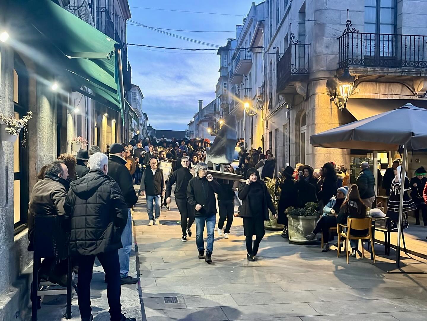 Em jeito de paródia, um andor desfila pela cidade com a réplica de um bacalhau.