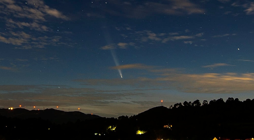 Na passada segunda-feira, ao anoitecer, apontou a lente da máquina fotográfica para o céu e conseguiu um notável registo do cometa C/2023 A3 Tsuchinshan-ATLAS.