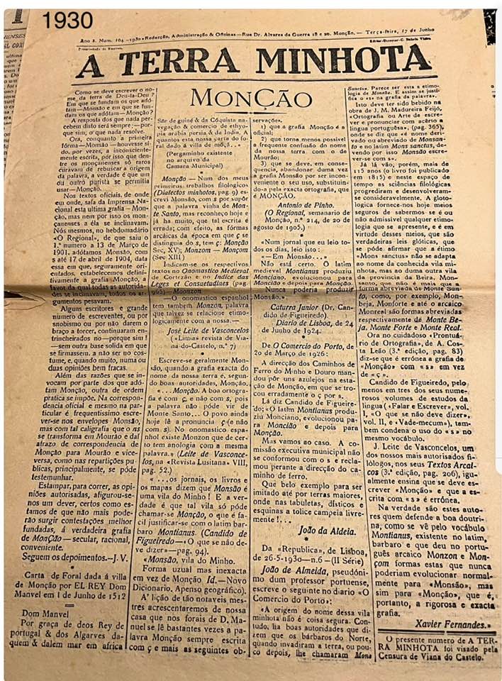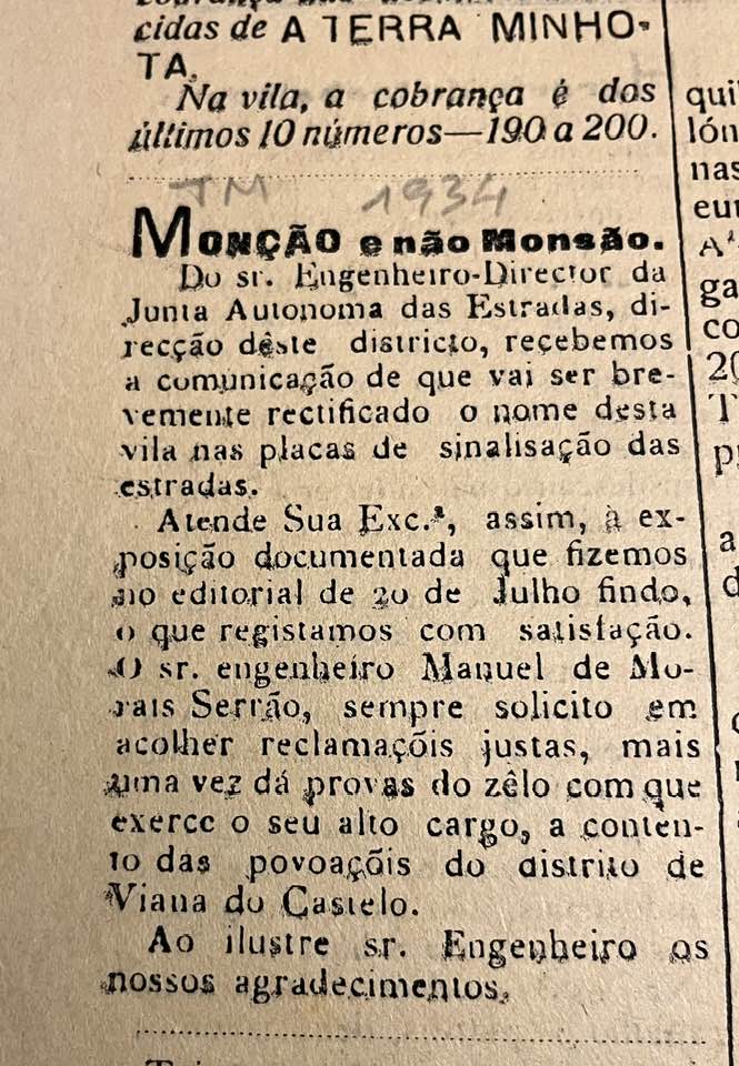 Em janeiro de 1935, a palavra “Monção” – com “ç” – era já aceite por todos.