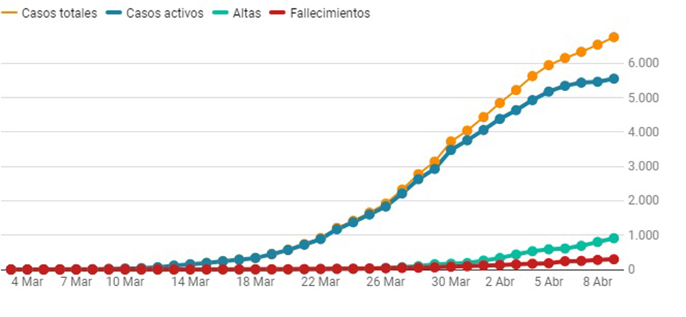 A curva galega está claramente a estabilizar e a descida pode acontecer nos próximos dias. A Galiza soma agora 6.758 casos confirmados de infeção pelo novo coronavírus (COVID-19) e prossegue com taxas de crescimento relativamente baixas: 3,36% em relação a esta quarta-feira, o que equivale a apenas mais 220 novos casos.