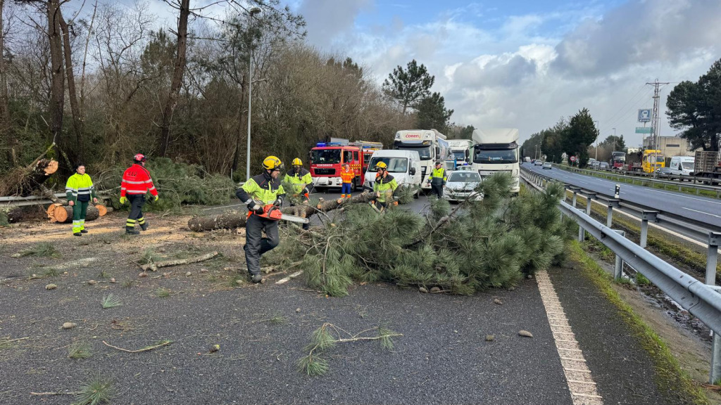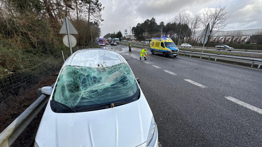 Um condutor ficou ferido após uma árvore ter atingido em cheio, ao final da manhã desta quarta-feira, a viatura ligeira de mercadorias que conduzia na A-55, na zona de O Porriño, na Galiza.