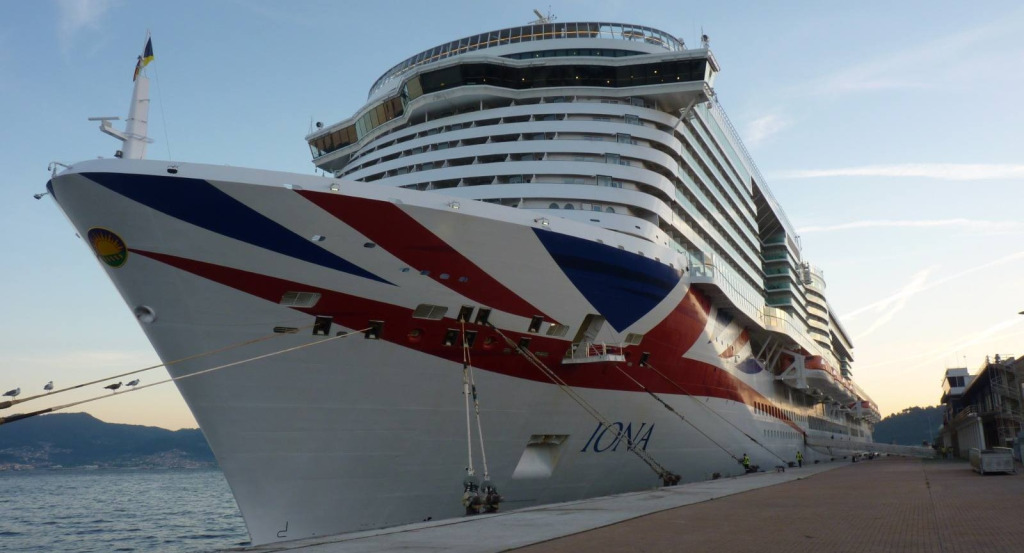 Chama-se Iona. É o terceiro maior navio cruzeiro do mundo… e está em Vigo, na Galiza, Espanha. Pertence à companhia britânica P&O Cruises.
