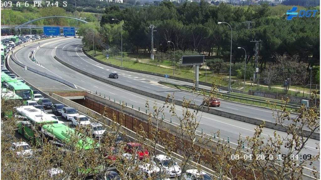 Não. A imagem não é de arquivo. Foi captada durante a tarde desta quarta-feira em plena A-6, saída de Madrid em direção à Corunha, na Galiza. O ambiente até poderia ser normal noutros anos. No entanto, isto ocorreu com um país inteiro em Estado de Alarme devido à propagação do novo coronavírus (COVID-19).