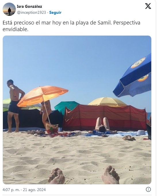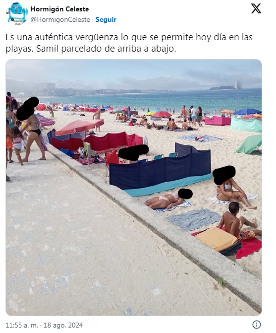 “O mar está lindo hoje na praia de Samil. Perspetiva invejável”, escreveu um em tom irónico. A acompanhar, um fotografia onde, em vez de ondes, pode ver-se um paravento a poucos metros.