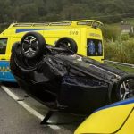 Por razões ainda não apuradas, a condutora – cuja idade ainda se desconhece – perdeu o controlo da viatura. Embateu contra um muro e o veículo acabou capotado na faixa de rodagem.
