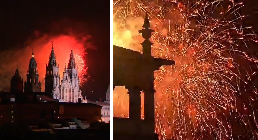 Foram cerca de três toneladas de material pirotécnico que ao final da noite deste domingo iluminaram os céus de Santiago de Compostela, na Galiza. Um espetáculo impressionante que, segundo a Televisión de Galicia, foi visível a 50 quilómetros de distância.